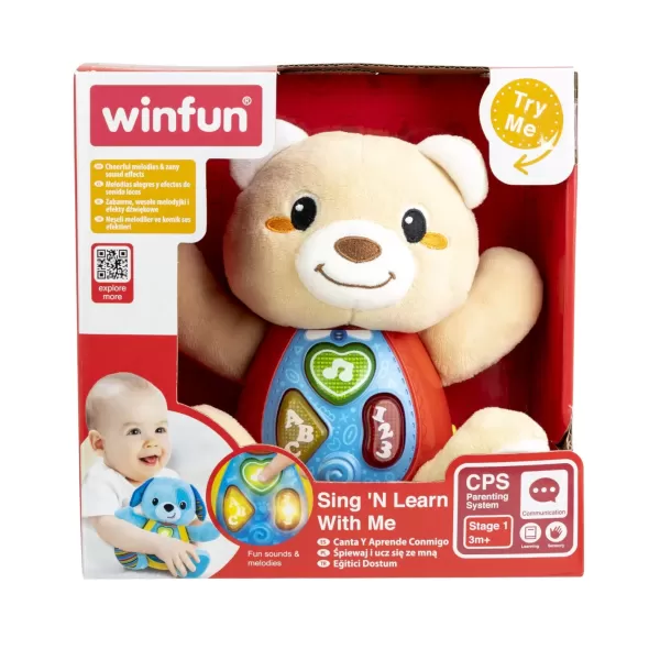 Descoperiti ursuletul interactiv si educativ perfect pentru bebelusii incepand cu varsta de 3 luni. Acest ursulet inovator este conceput pentru a stimula dezvoltarea cognitiva si senzoriala a celor mici, oferindu-le in acelasi timp ore intregi de distractie si invatare. Ursuletul este echipat cu trei butoane luminoase care capteaza imediat atentia copiilor. Aceste butoane nu doar stralucesc, ci si activeaza fraze cu rime si invatare simpla. Pe langa frazele cu rime, ursuletul include si o varietate de melodii distractive si vesele. Ursuletul este conceput pentru a fi usor de manevrat de catre cei mici. Butoanele luminoase sunt mari si usor de apasat, incurajand coordonarea mana-ochi si dezvoltarea abilitatilor motorii fine. Cand copiii apasa pe butoane, sunt recompensati cu lumini, sunete si fraze, incurajand explorarea si invatarea prin joc. In plus, ursuletul este durabil si rezistent, fiind construit pentru a face fata entuziasmului si energiei copiilor mici. Culorile vii si designul atractiv sunt menite sa atraga atentia si sa mentina interesul celor mici pentru perioade lungi de timp. Recomandat pentru copiii cu varsta de cel putin 3 luni, acest ursulet interactiv este un instrument excelent pentru a sustine dezvoltarea timpurie a copiilor, combinand invatarea cu distractia intr-un mod placut si captivant.
