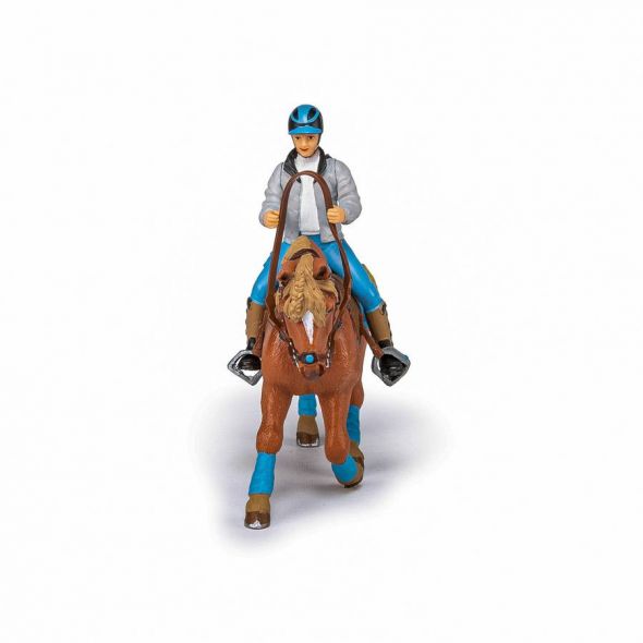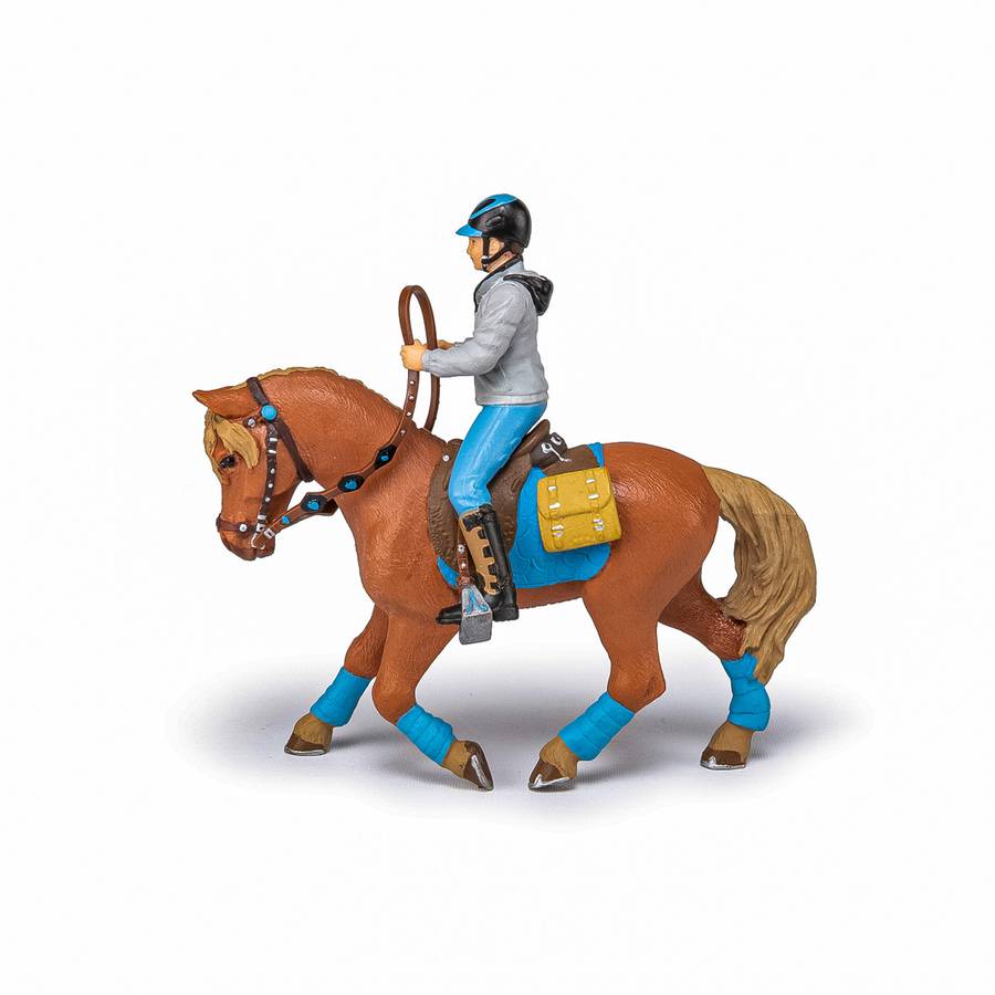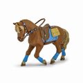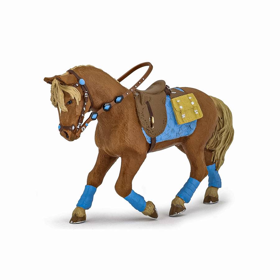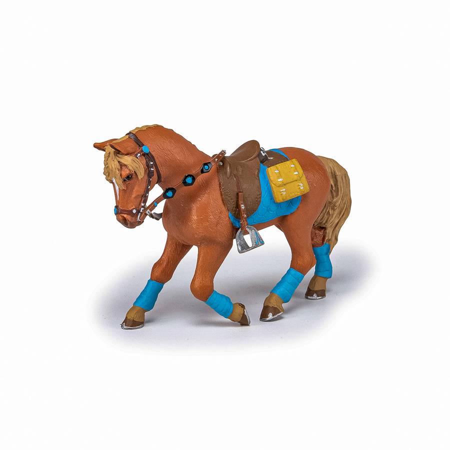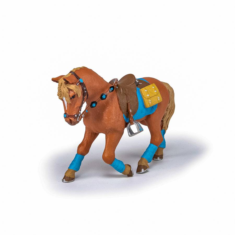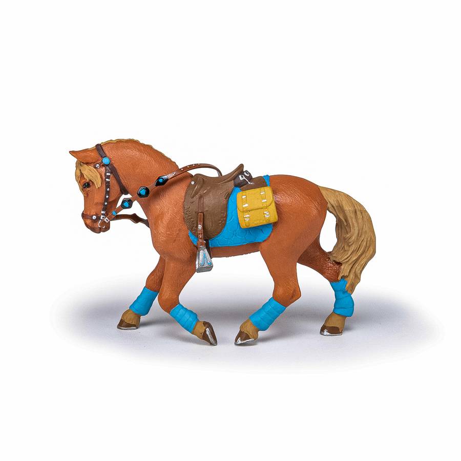Foarte elegant, cu sa albastra si benzile asortate, care ies in evidenta pe blana sa castanie, acest cal asteapta cu rabdare sosirea calaretului sau pentru a merge la o plimbare in padure. Produsul are urmatoarele dimensiuni 11.7 x 3.5 x 8cm si este recomandat copiilor cu varsta peste 3 ani. De mai bine de 20 de ani, Papo inoveaza constant si ii face pe copii din intreaga lume sa viseze cu o gama bogata de peste 600 de produse, reprezentand 12 lumi, animale si personaje. De la modelul original la serie, fiecare dintre figurinele Papo a fost conceputa si creata in Franta pentru a fi fabricata intr-o permanenta preocupare pentru calitate. Pictate manual, atentia la detalii este acum recunoscuta. Figurinele Papo se disting prin acuratete si realism, detaliile sunt de asa natura incat am putea crede ca se vor pune in miscare.