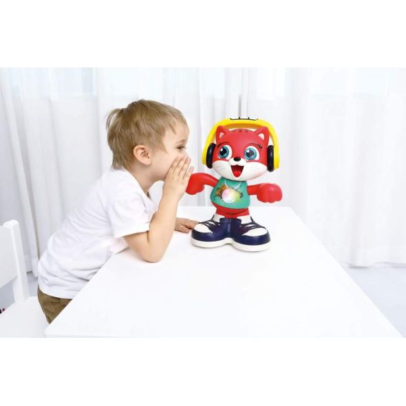 Jucarie cu functii intercative Pisicuta dansatoare. Microfon incorporat cu functie de talkback. Are 5 sunete si 6 melodii interactive. Pisicuta se misca si danseaza si da din coada.