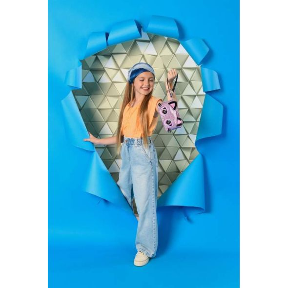 Gentuta Purse Pets prinde viata cu ochi expresivi si luminosi. Apasa-i nasul si alege o culoare care sa se potriveasca cu starea ta de spirit - sau alterneaza toate culorile curcubeului. Cuprinde 3 baterii LR44.Geanta pentru copii, Purse Pets, are o curea de 33 cm care poate fi infasurata pentru a fi purtata la incheietura mainii sau prinsa la celalalt capat, pentru a purta geanta pe post de borseta sau de geanta de umar. Cuprinde 1 Geanta Pets Bag si 1 foaie cu instructiuni.